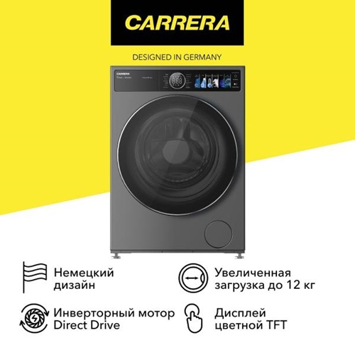 Стиральная машина Carrera CRWM626 оснащена инверторным мотором Direct Drive. Это обеспечивает стабильную работу устройства с низким уровнем шума и вибрации.