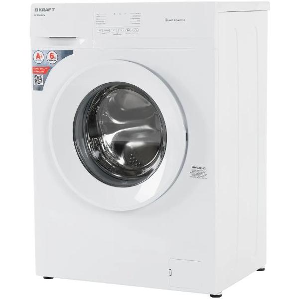 С помощью таймера удобно переносить начало работы на срок до 24 часов. Выбор параметров осуществляется посредством кнопок, расположенных на панели управления. В течение некоторого времени после начала цикла можно добавить забытые вещи. Контролировать процесс работы удобно с помощью световых индикаторов. Модель Kraft KF-ED6206W потребляет 47,7 л воды за цикл. Габариты: 84x60x45 см.